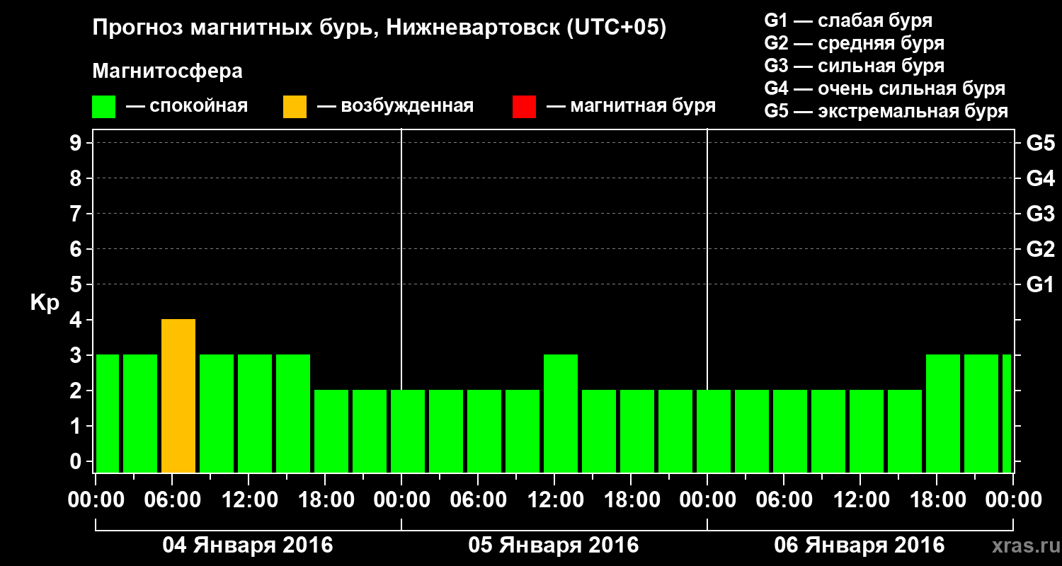 Прогноз магнитных бурь в Нижневартовске — 4 января 2016 года