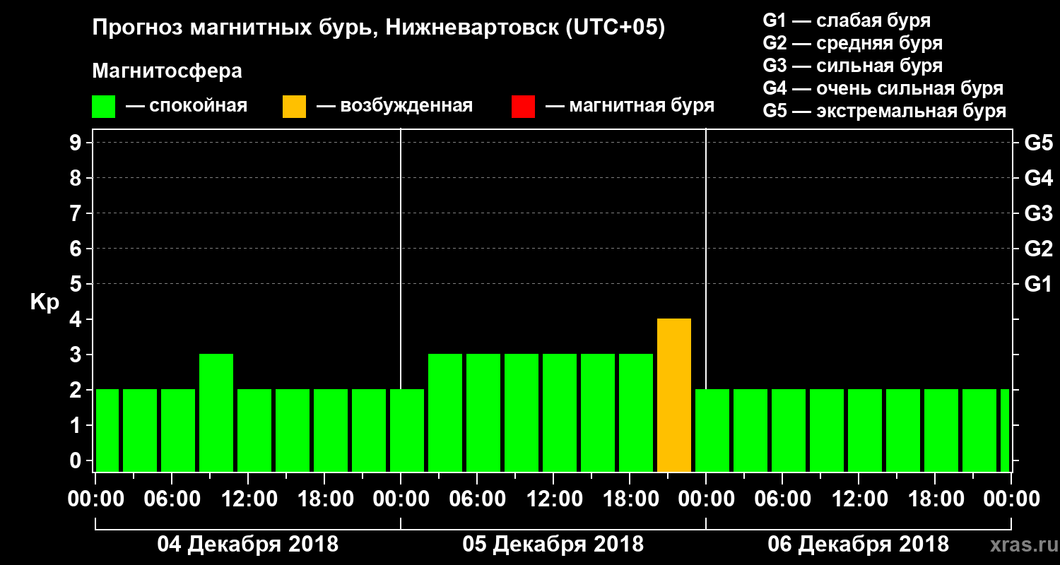 Прогноз магнитных бурь в Нижневартовске на 4 декабря 2018 года