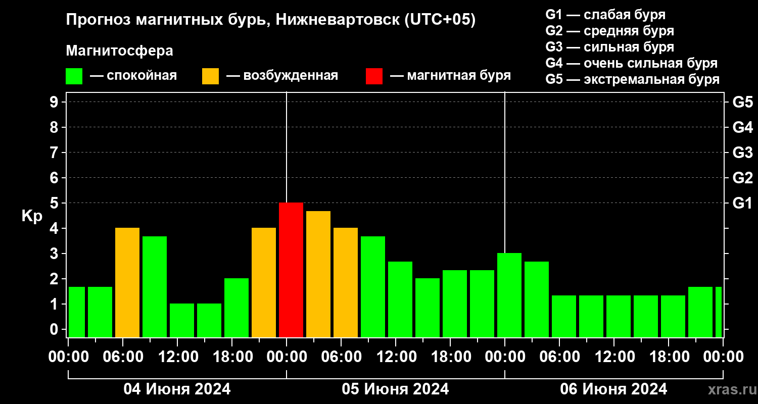 Прогноз магнитных бурь в Нижневартовске — 4 июня 2024 года