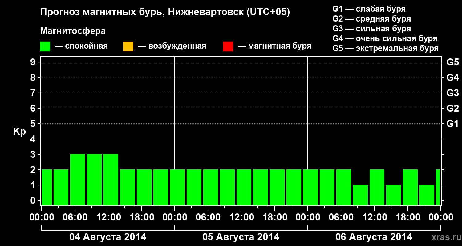 Прогноз магнитных бурь в Нижневартовске — 4 августа 2014 года