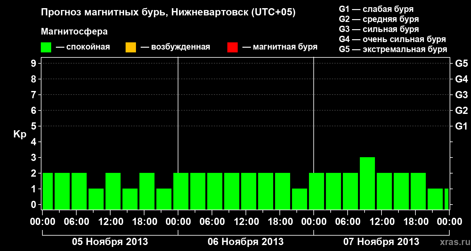 Прогноз магнитных бурь в Нижневартовске — 5 ноября 2013 года