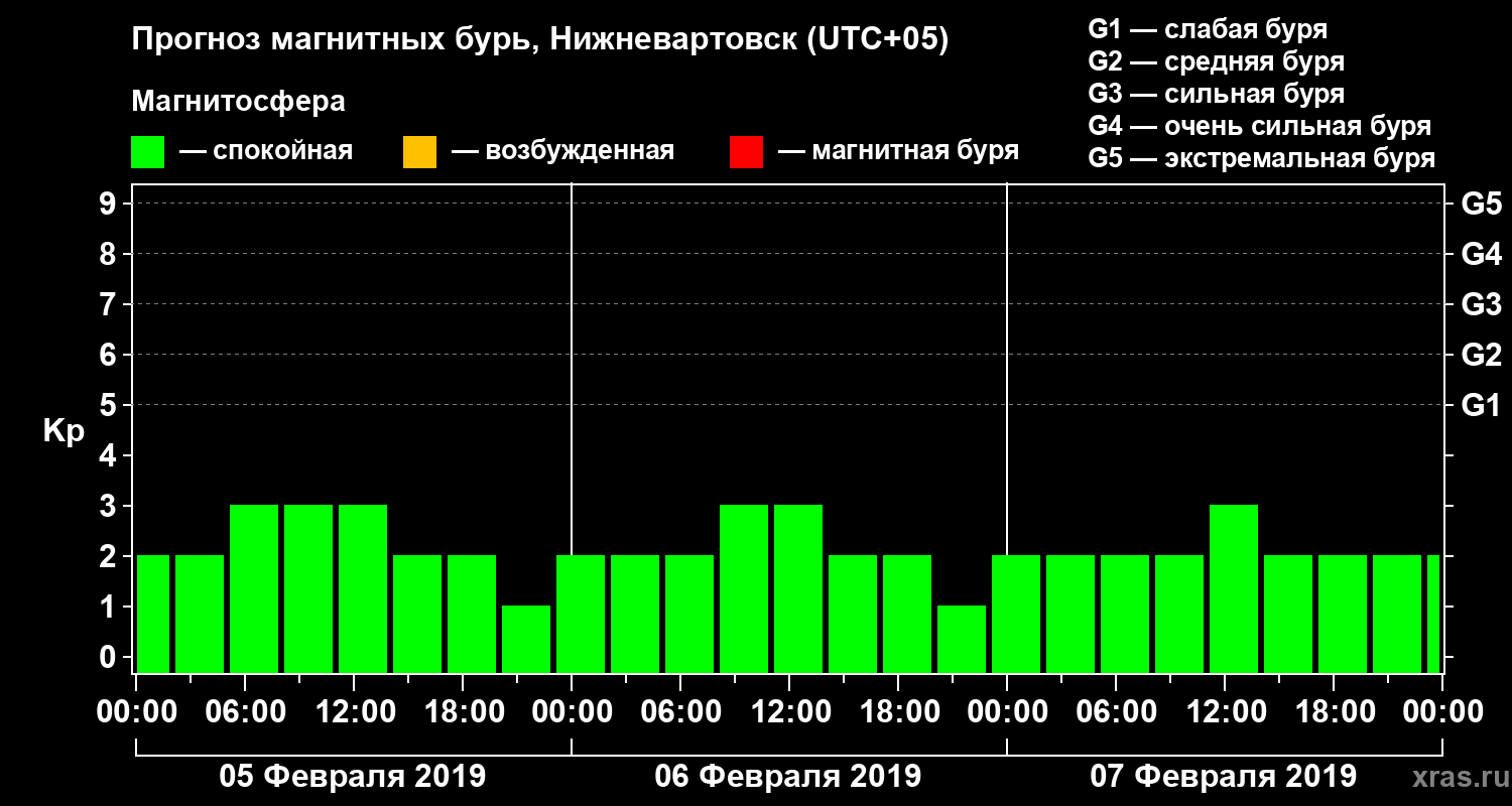 Прогноз магнитных бурь в Нижневартовске на 5 февраля 2019 года
