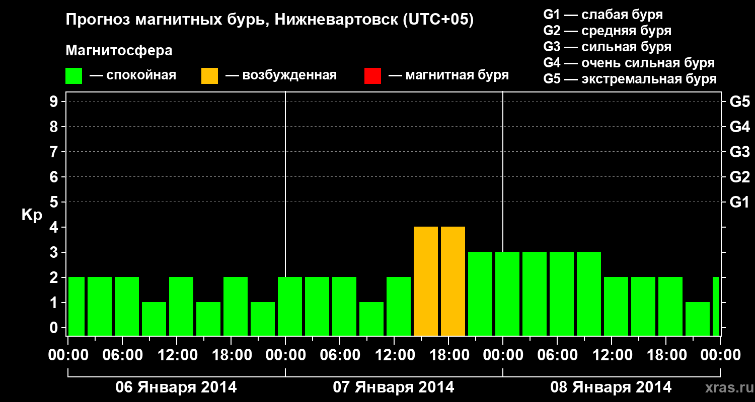 Прогноз магнитных бурь в Нижневартовске — 6 января 2014 года
