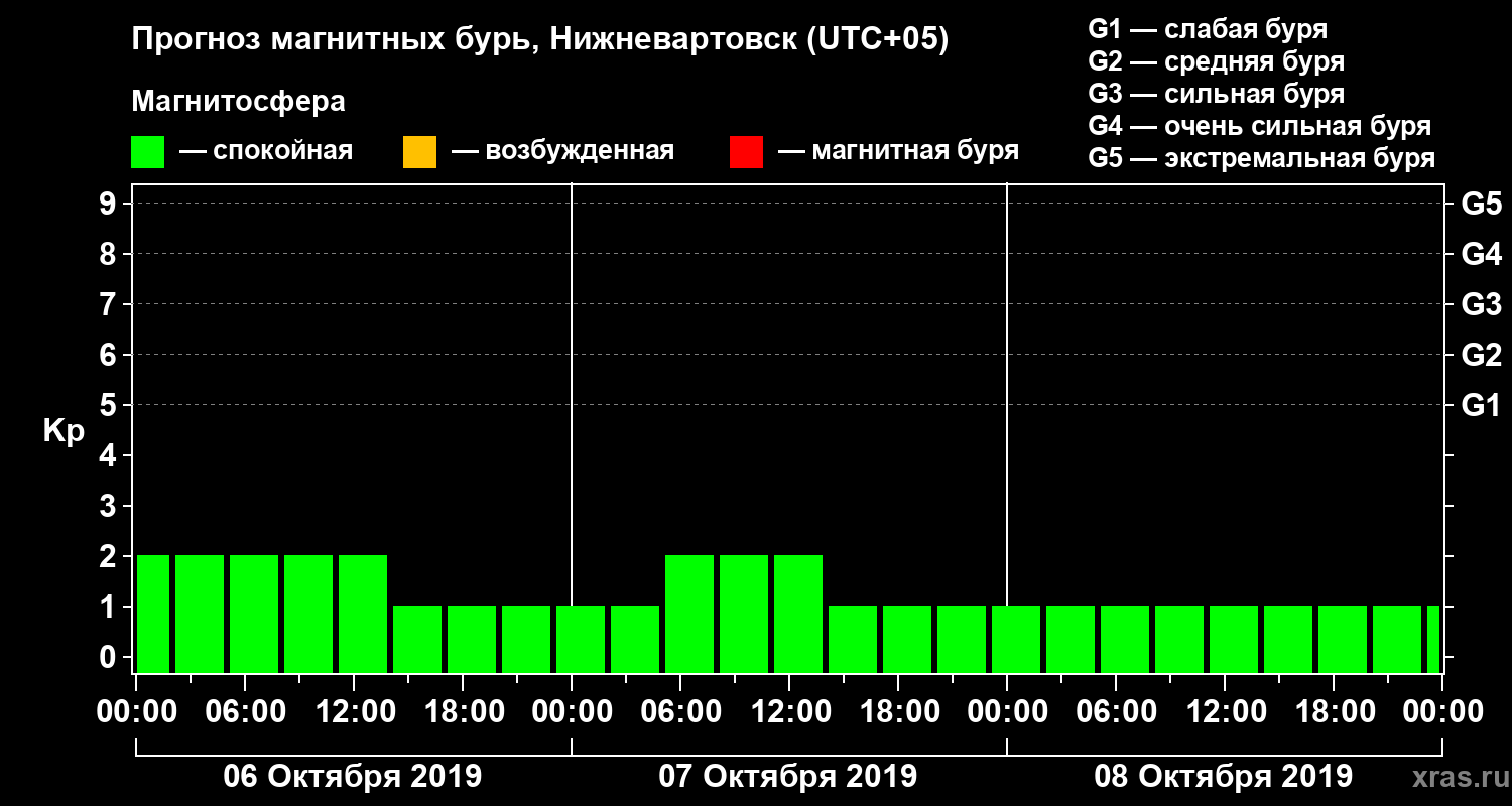 Прогноз магнитных бурь в Нижневартовске — 6 октября 2019 года