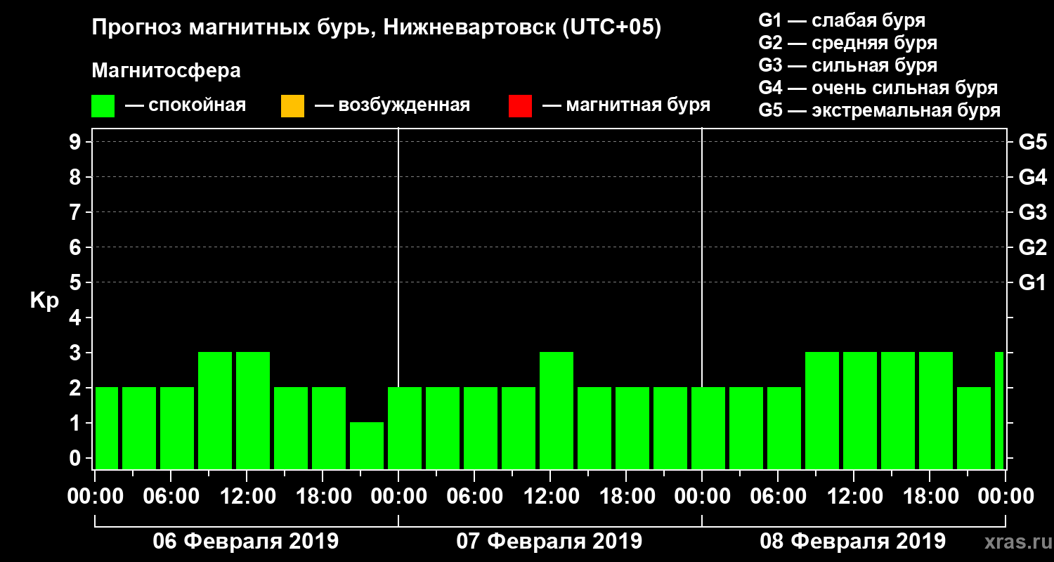 Прогноз магнитных бурь в Нижневартовске — 6 февраля 2019 года