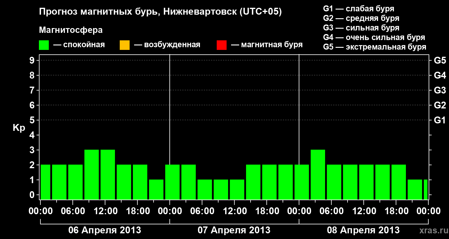 Прогноз магнитных бурь в Нижневартовске — 6 апреля 2013 года