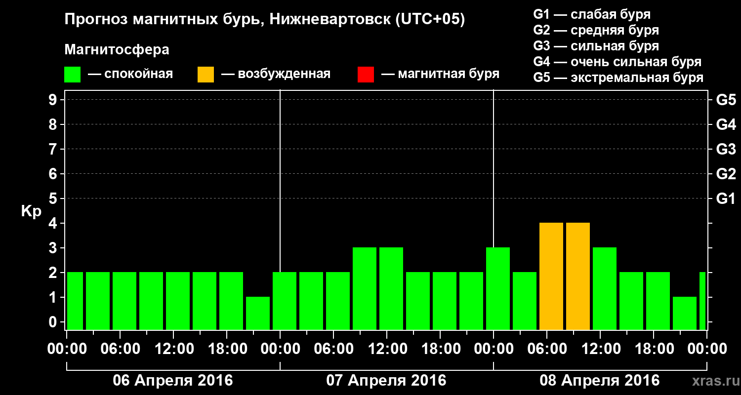 Прогноз магнитных бурь в Нижневартовске — 6 апреля 2016 года