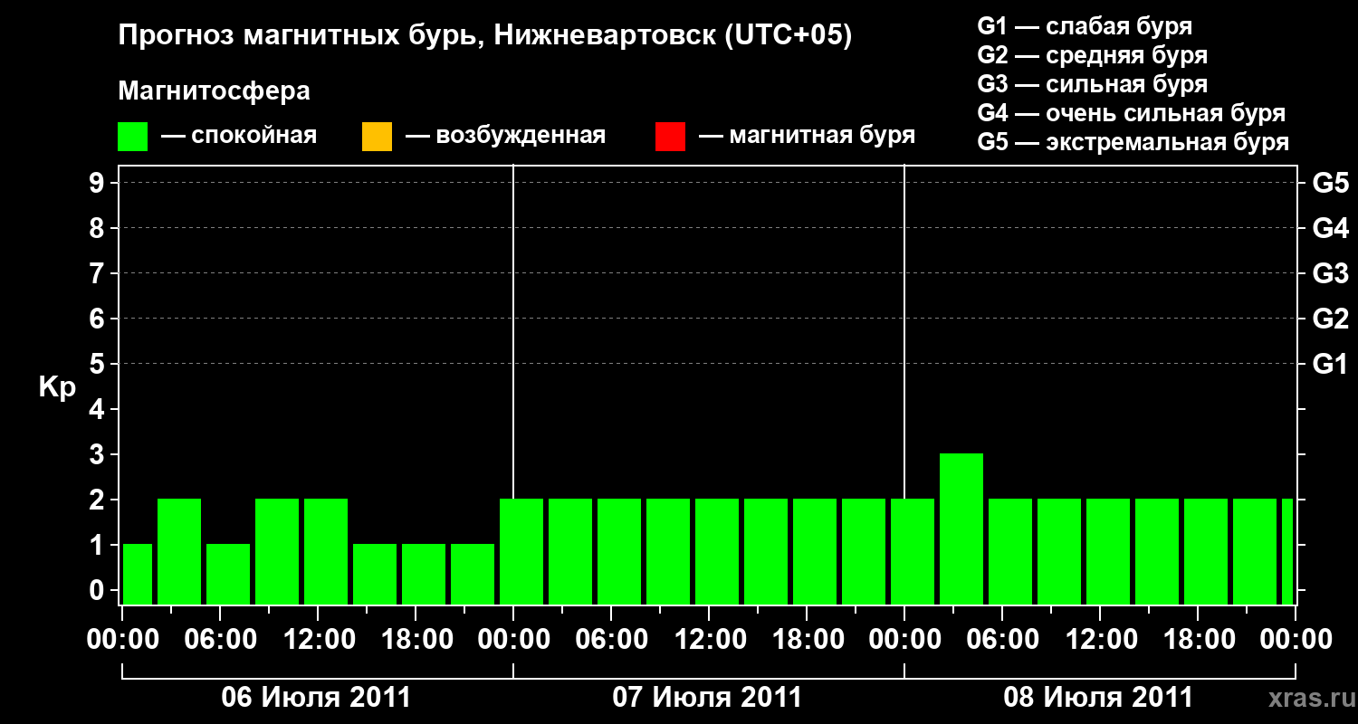 Прогноз магнитных бурь в Нижневартовске — 6 июля 2011 года
