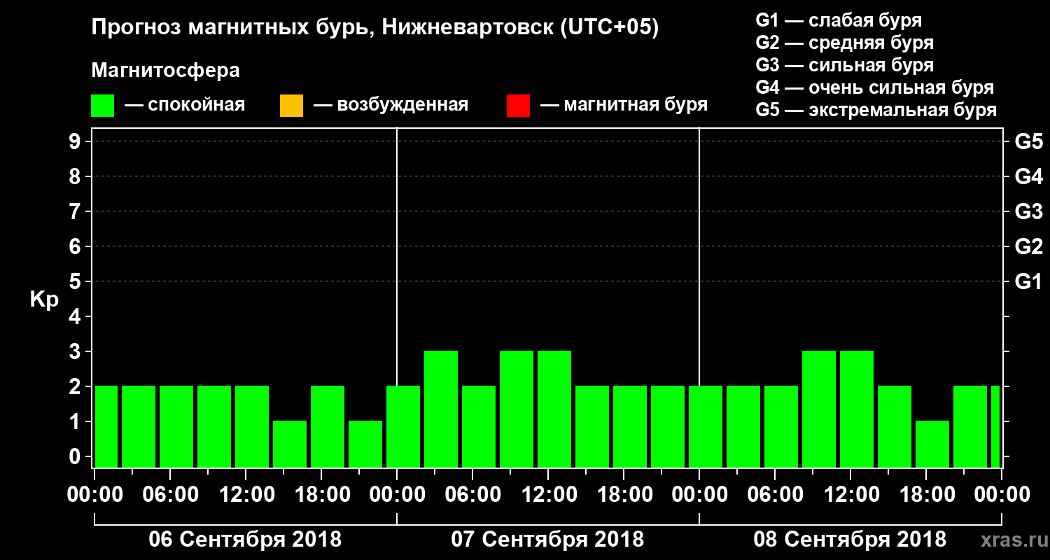 Прогноз магнитных бурь в Нижневартовске на 6 сентября 2018 года