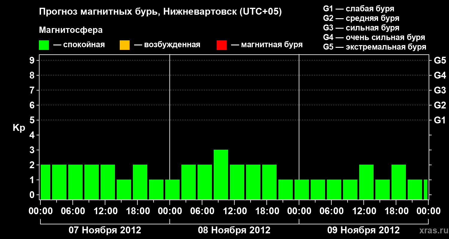 Прогноз магнитных бурь в Нижневартовске — 7 ноября 2012 года