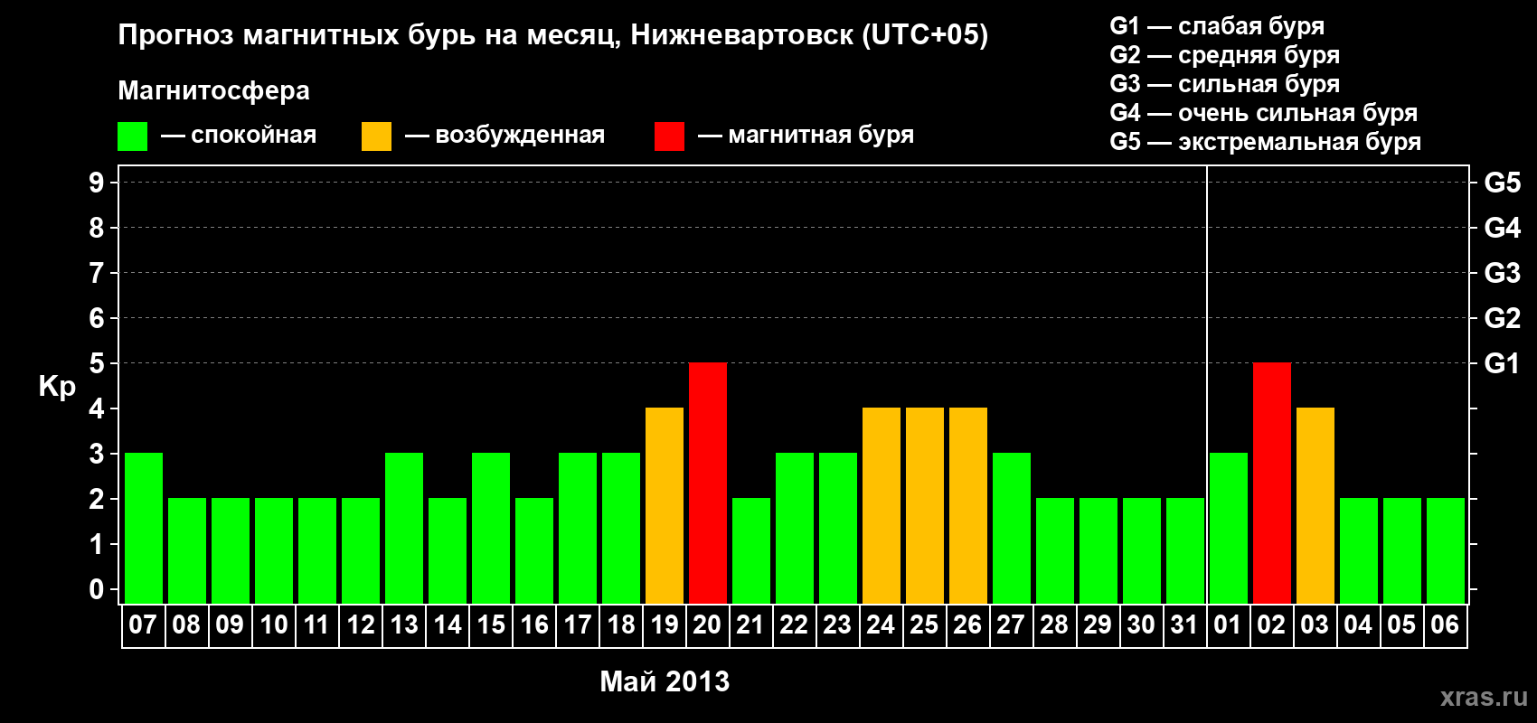 Прогноз магнитных бурь в Нижневартовске — 7 мая 2013 года
