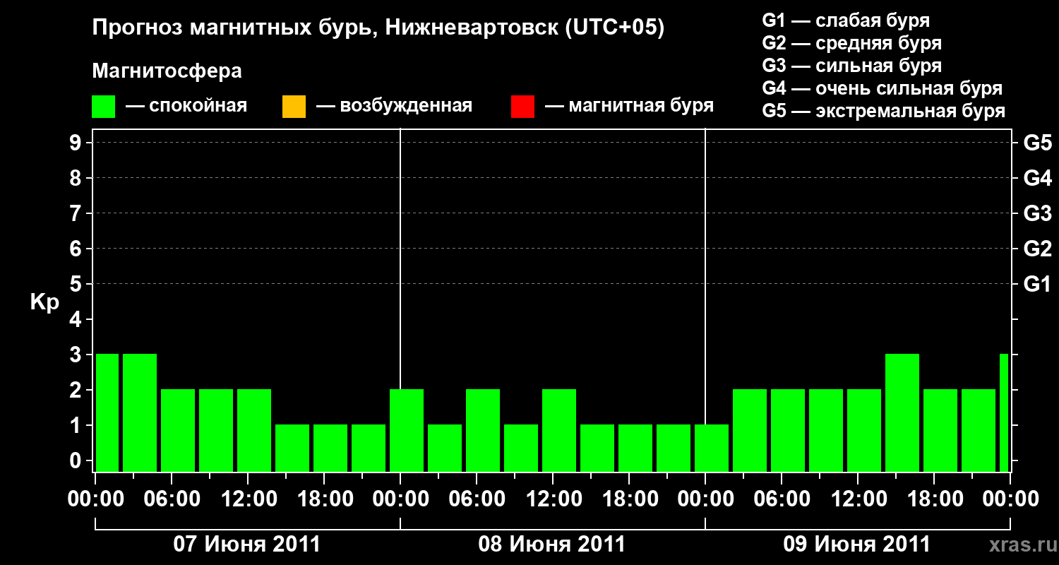 Прогноз магнитных бурь в Нижневартовске — 7 июня 2011 года