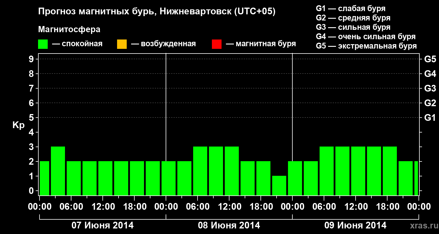 Прогноз магнитных бурь в Нижневартовске — 7 июня 2014 года