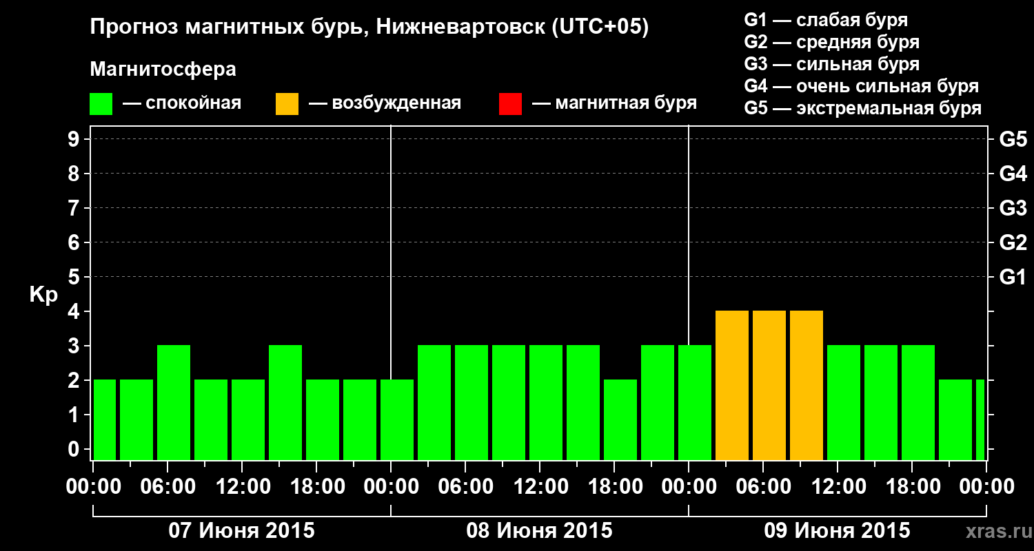 Прогноз магнитных бурь в Нижневартовске — 7 июня 2015 года