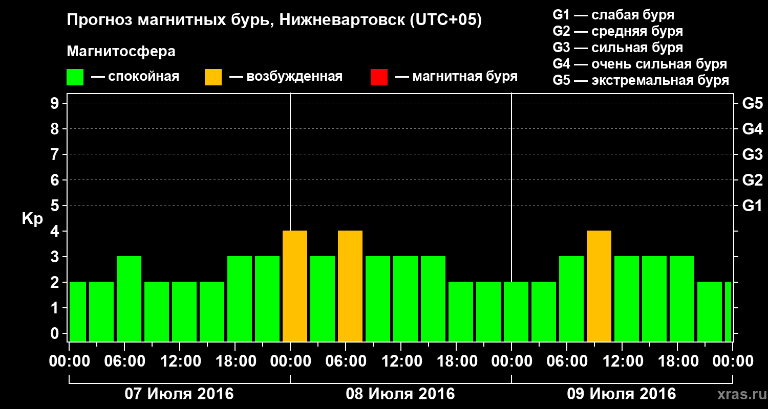 Прогноз магнитных бурь в Нижневартовске — 7 июля 2016 года