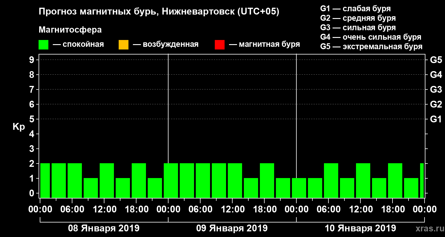 Прогноз магнитных бурь в Нижневартовске на 8 января 2019 года