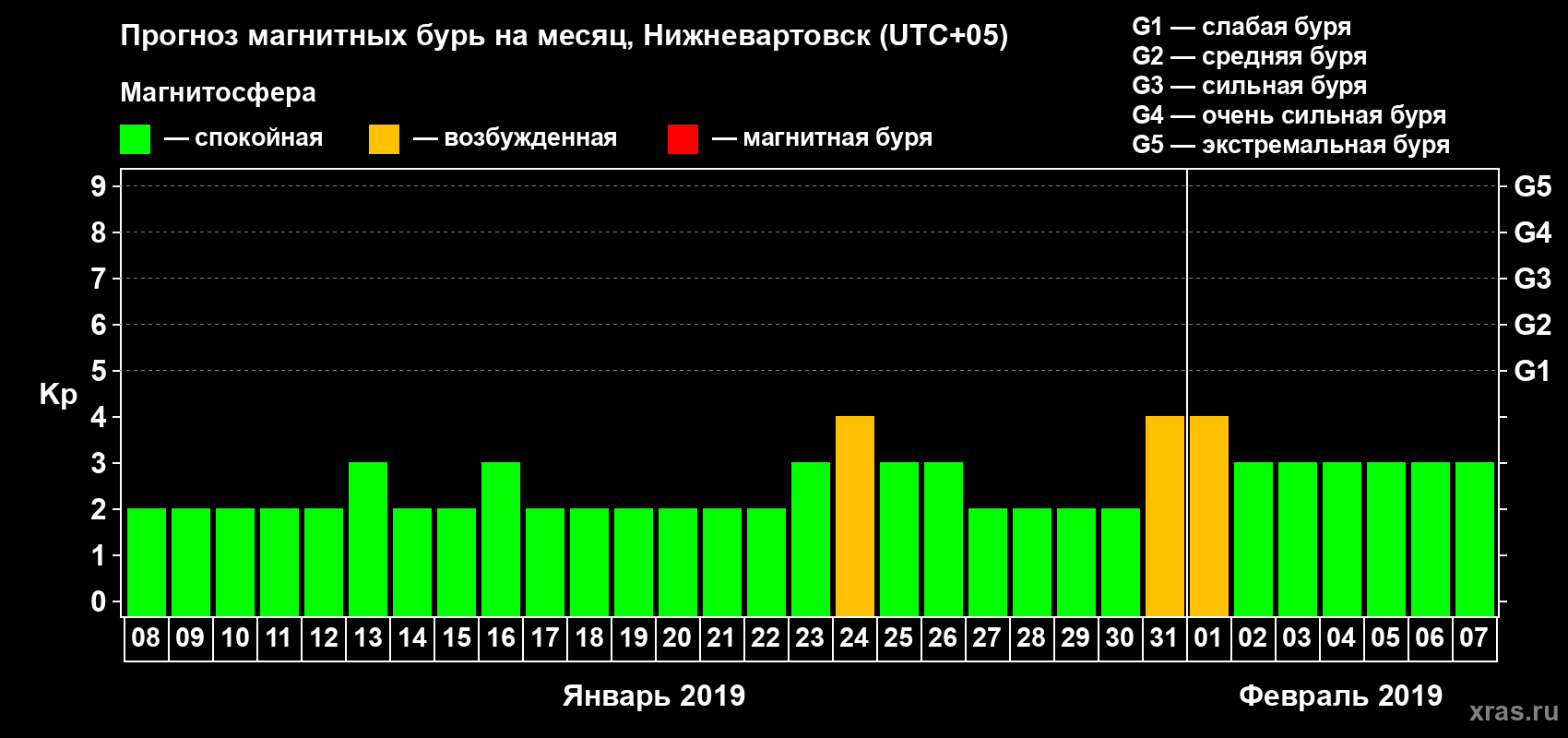Прогноз магнитных бурь в Нижневартовске — 8 января 2019 года