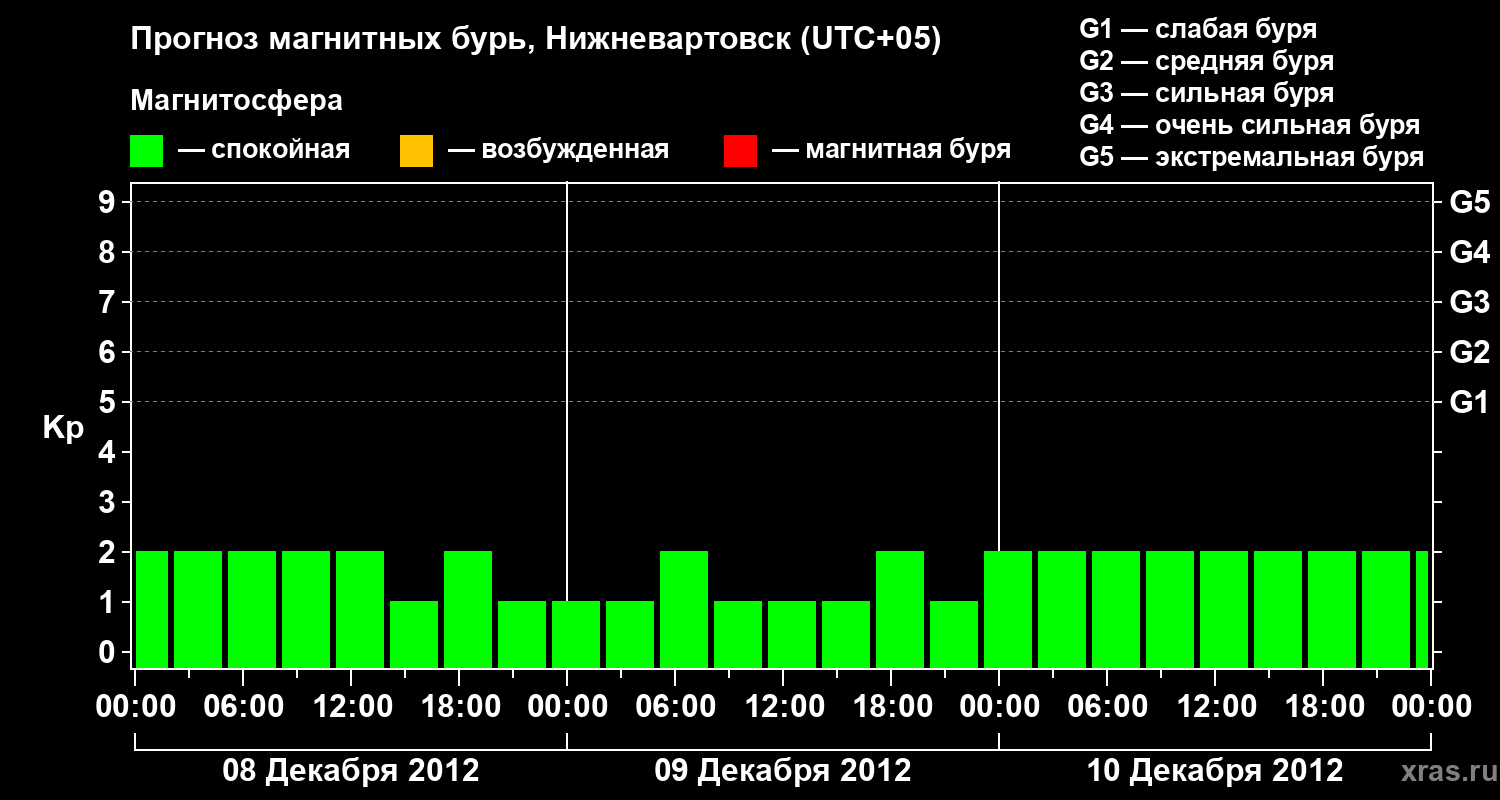 Прогноз магнитных бурь в Нижневартовске — 8 декабря 2012 года