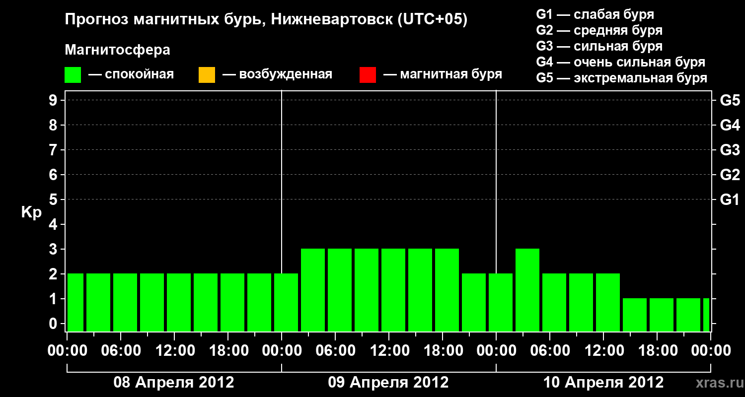 Прогноз магнитных бурь в Нижневартовске на 8 апреля 2012 года