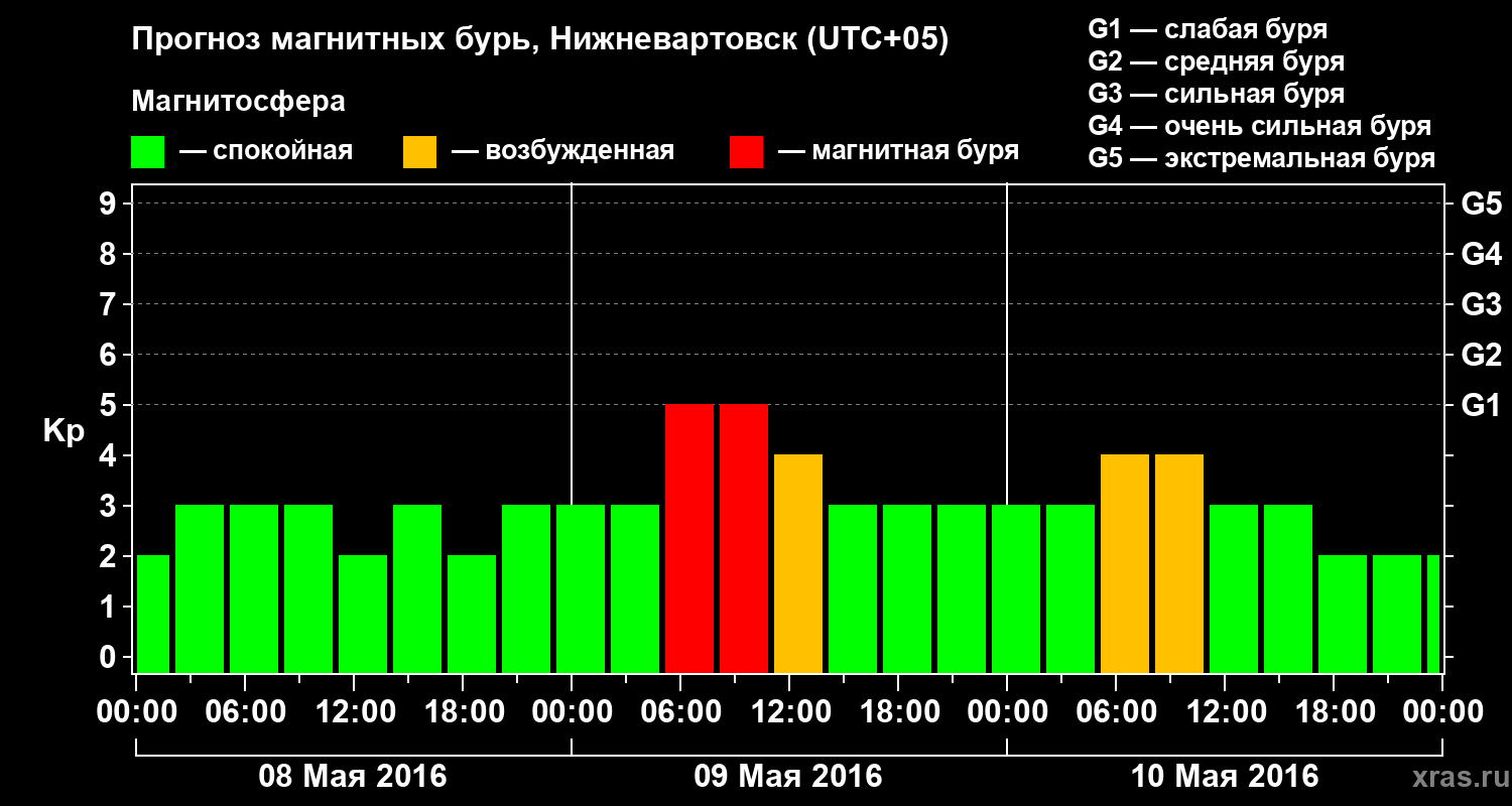 Прогноз магнитных бурь в Нижневартовске — 8 мая 2016 года