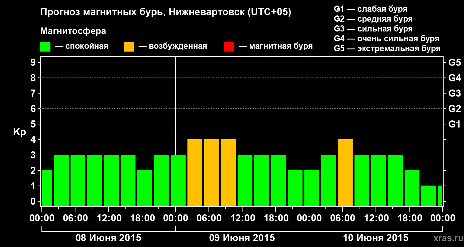 Прогноз магнитных бурь в Нижневартовске на 8 июня 2015 года
