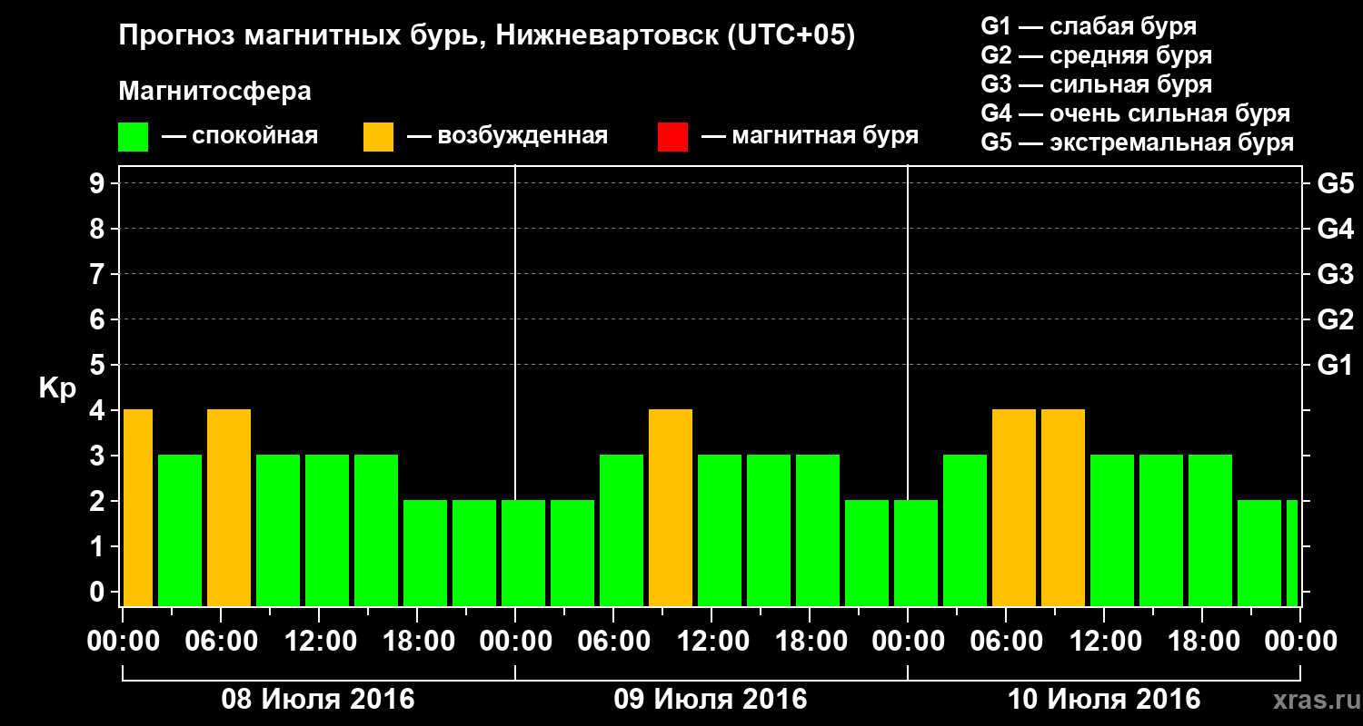 Прогноз магнитных бурь в Нижневартовске — 8 июля 2016 года