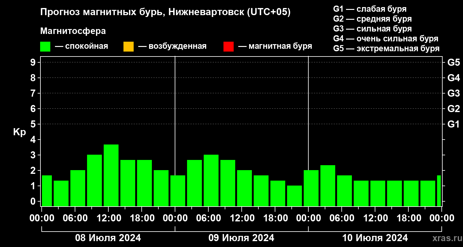 Прогноз магнитных бурь в Нижневартовске — 8 июля 2024 года