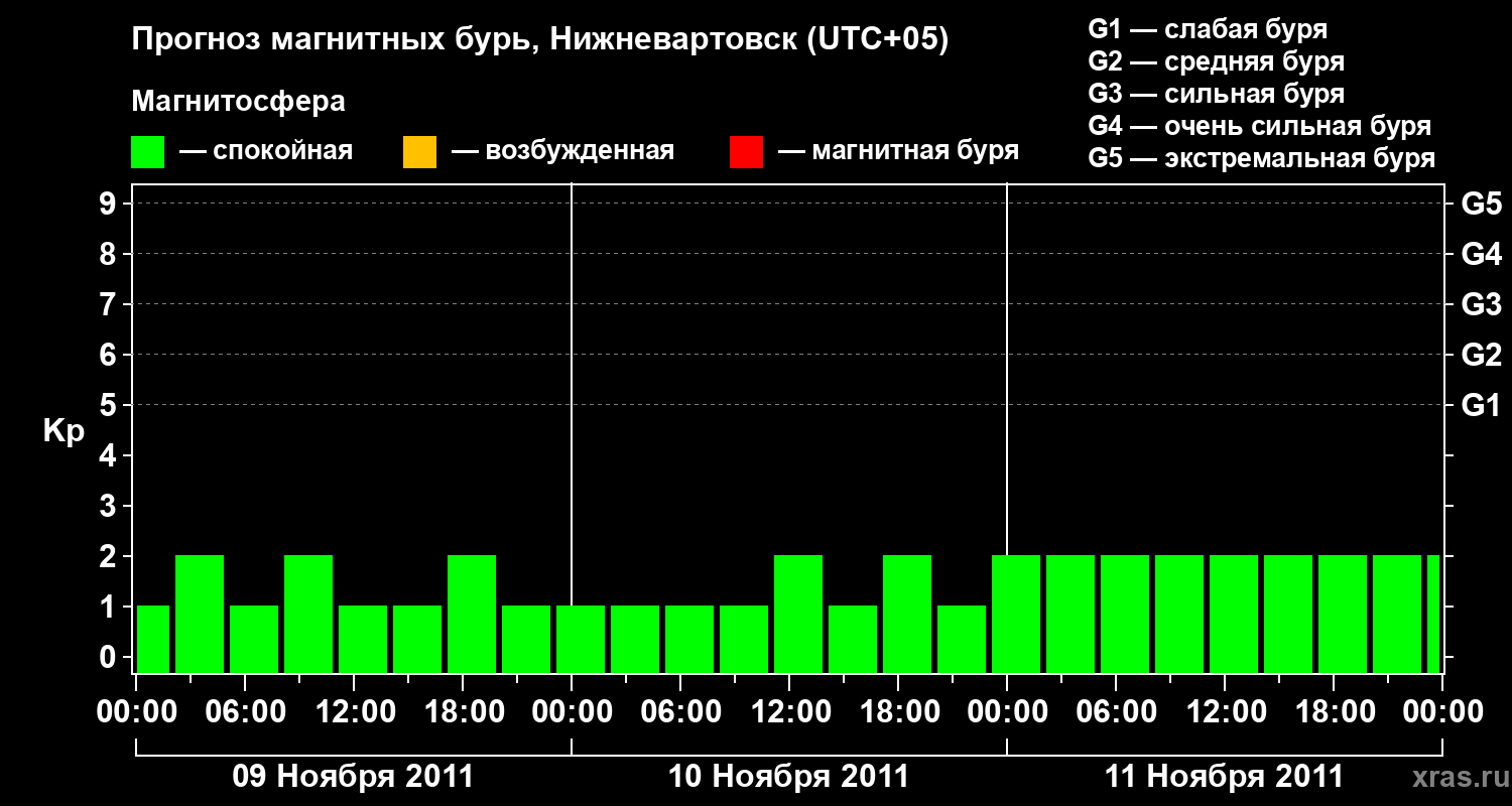 Прогноз магнитных бурь в Нижневартовске — 9 ноября 2011 года