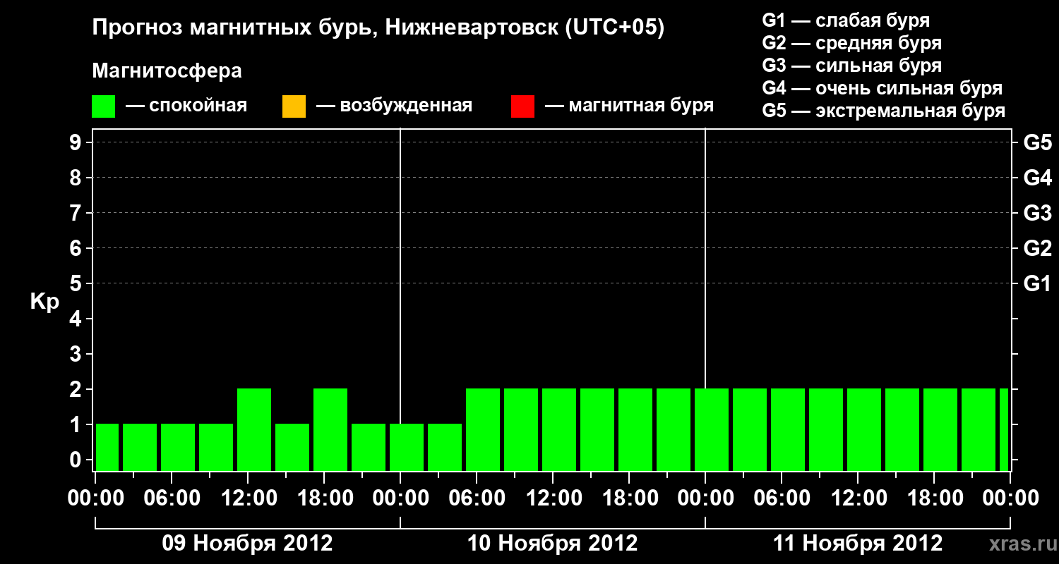 Прогноз магнитных бурь в Нижневартовске — 9 ноября 2012 года