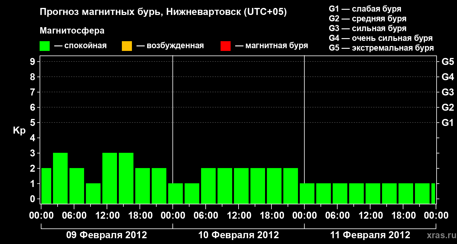 Прогноз магнитных бурь в Нижневартовске на 9 февраля 2012 года