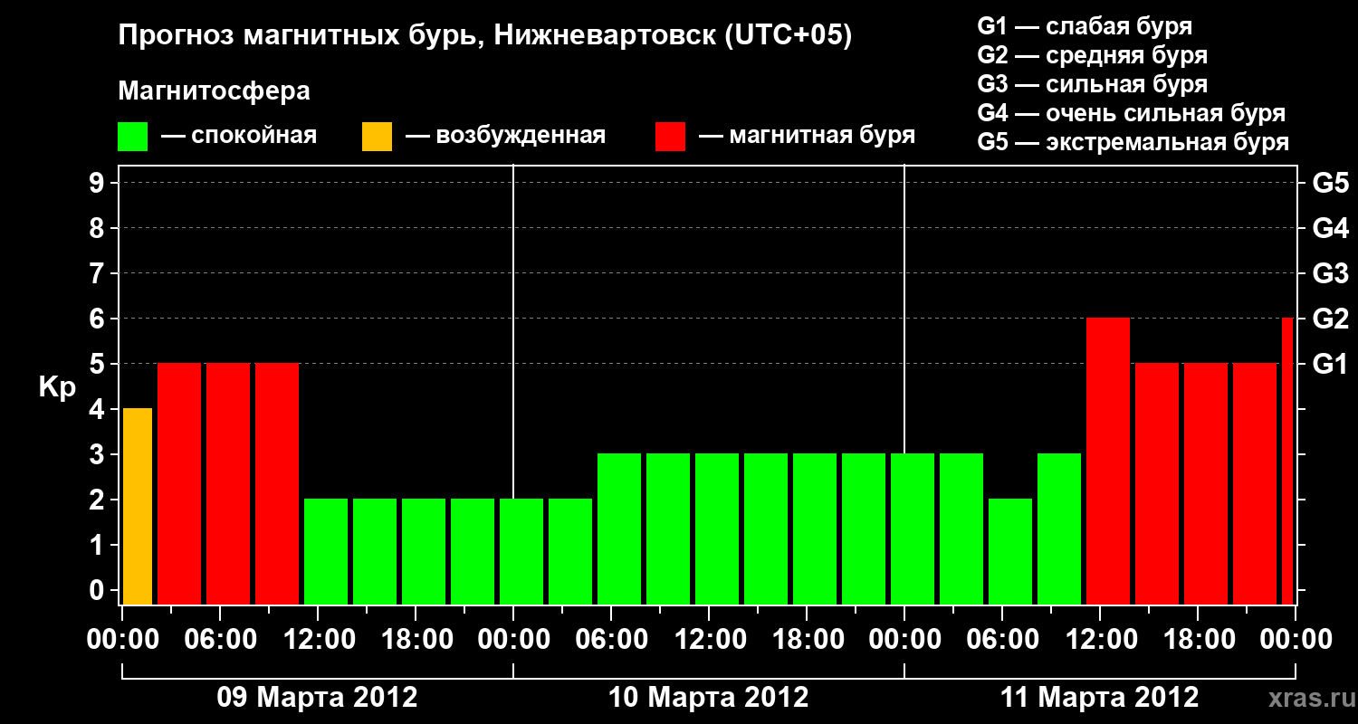 Прогноз магнитных бурь в Нижневартовске на 9 марта 2012 года
