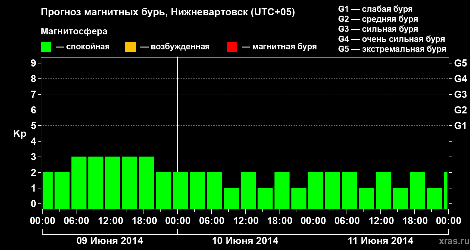 Прогноз магнитных бурь в Нижневартовске на 9 июня 2014 года