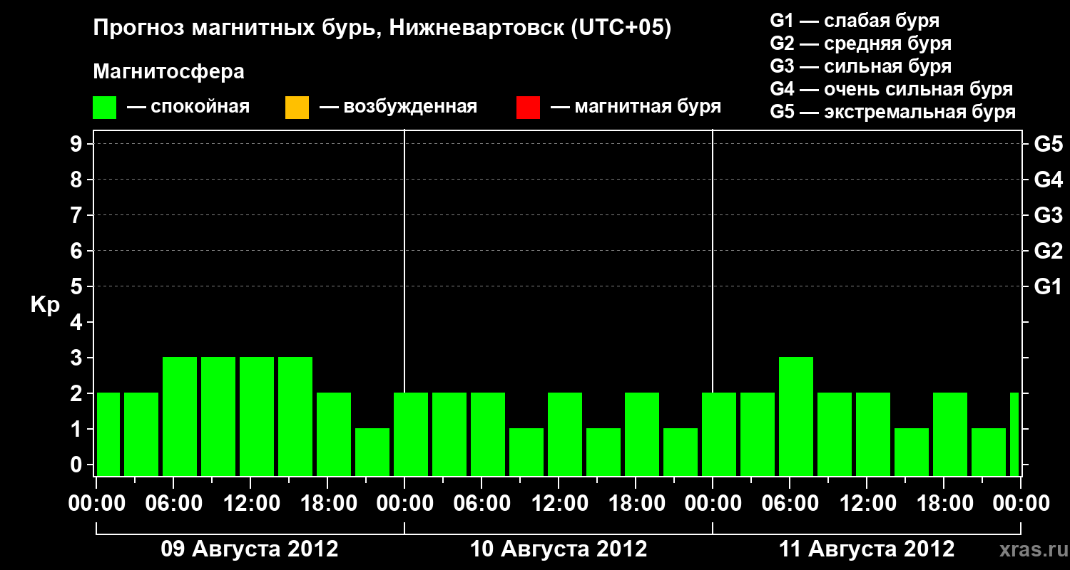 Прогноз магнитных бурь в Нижневартовске на 9 августа 2012 года
