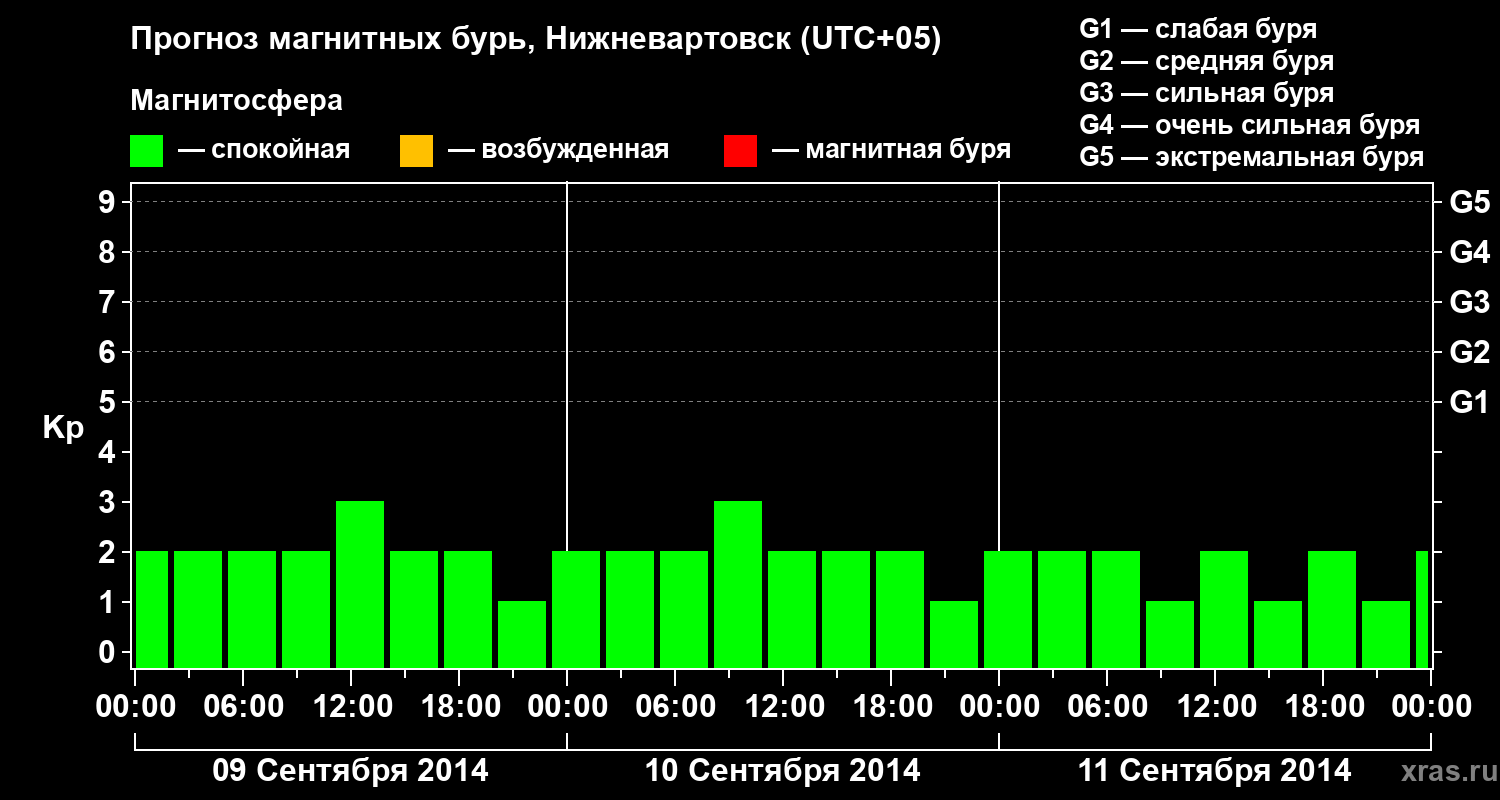 Прогноз магнитных бурь в Нижневартовске — 9 сентября 2014 года
