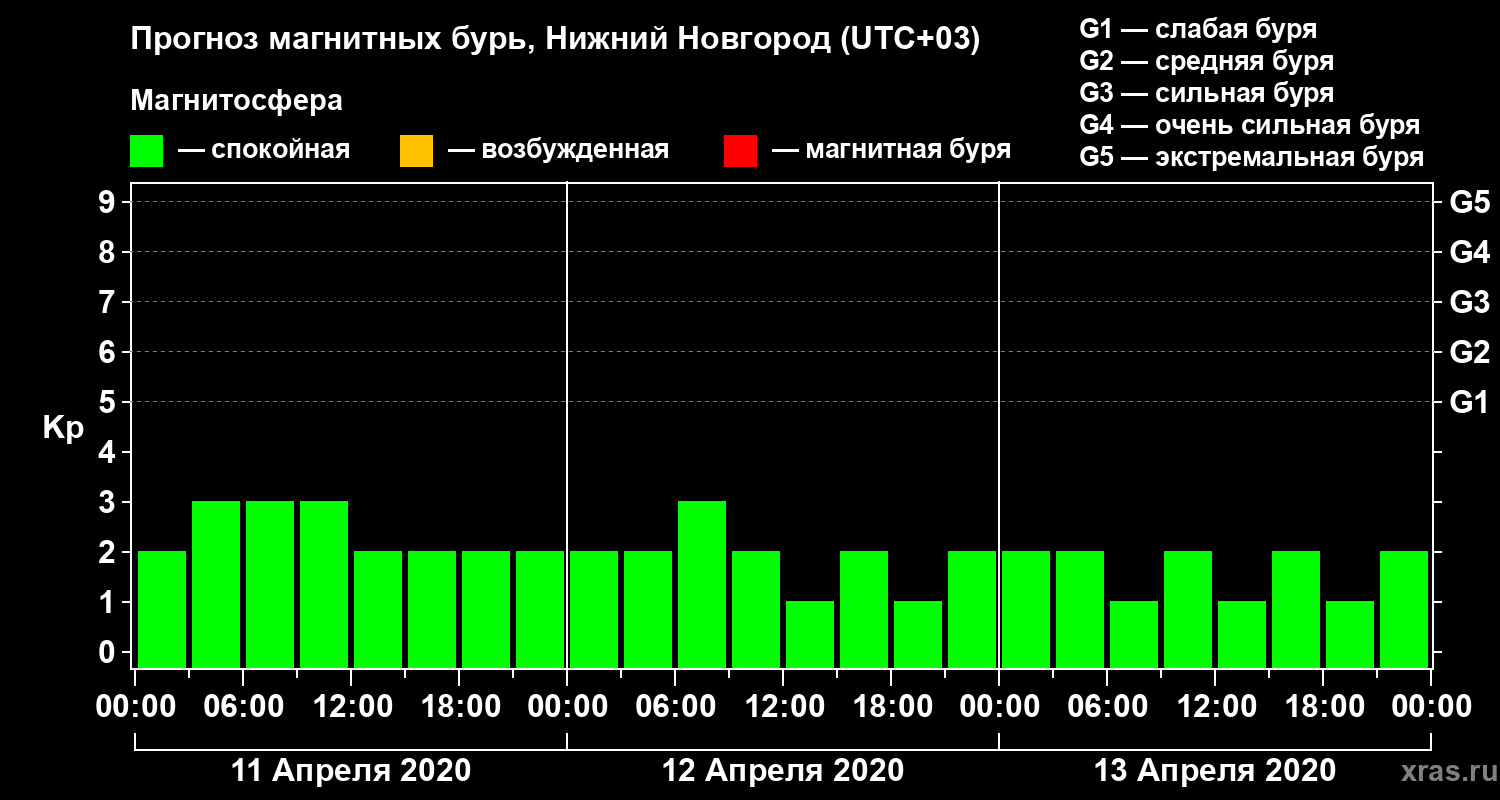Прогноз магнитных бурь Нижнем Новгороде на 11 апреля 2020 года