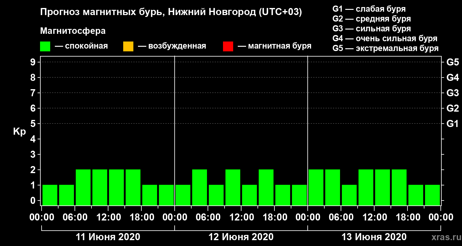 Прогноз магнитных бурь Нижнем Новгороде на 11 июня 2020 года