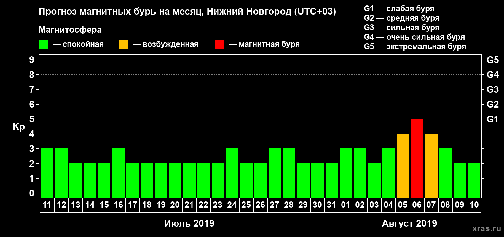 Прогноз магнитных бурь Нижнем Новгороде — 11 июля 2019 года