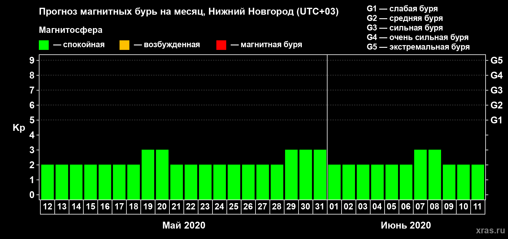 Прогноз магнитных бурь Нижнем Новгороде на 12 мая 2020 года