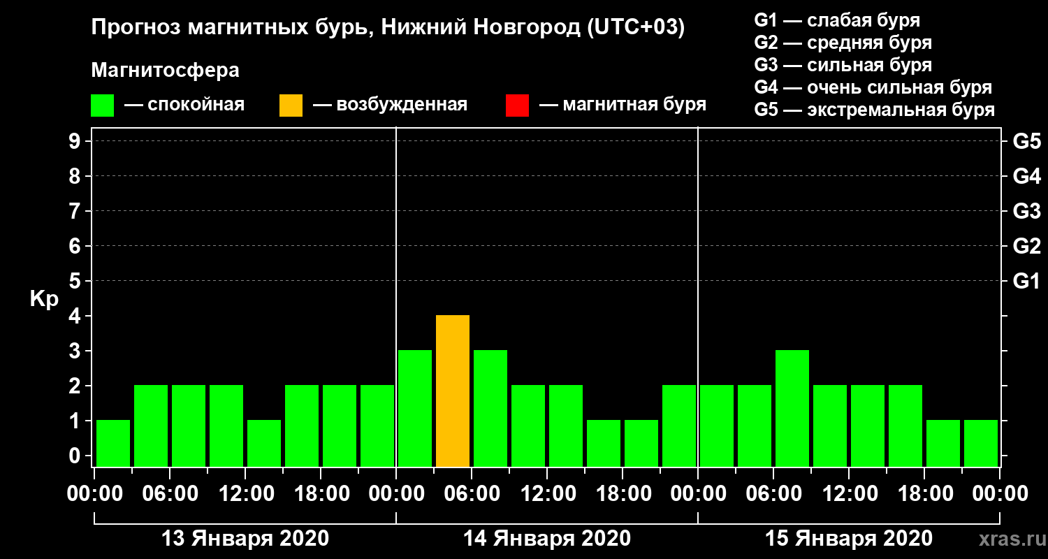 Прогноз магнитных бурь Нижнем Новгороде на 13 января 2020 года