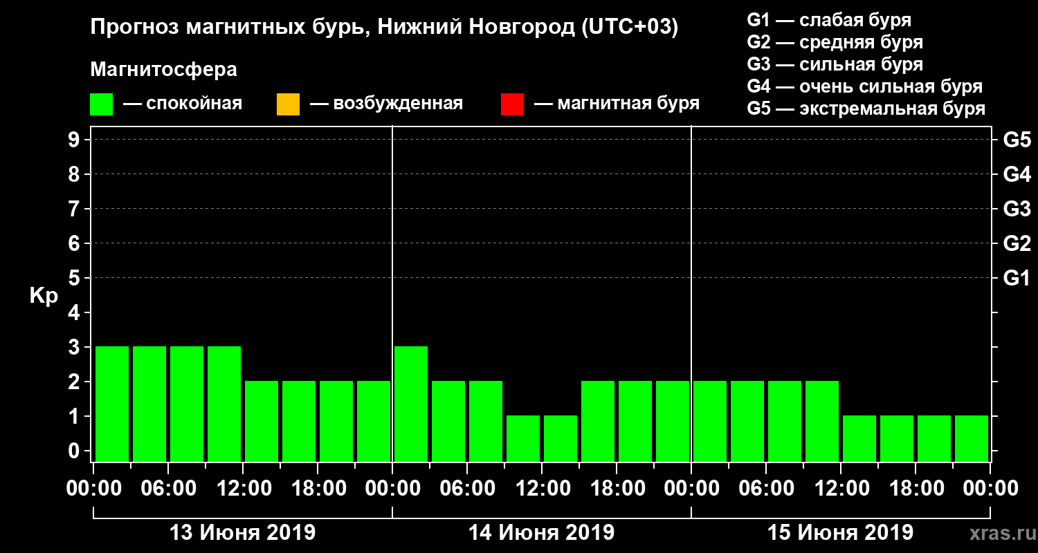 Прогноз магнитных бурь Нижнем Новгороде — 13 июня 2019 года