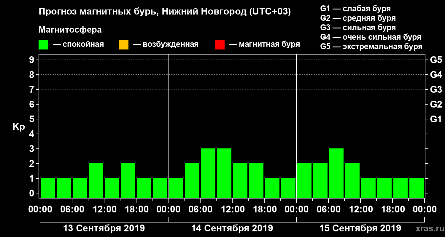Прогноз магнитных бурь Нижнем Новгороде на 13 сентября 2019 года