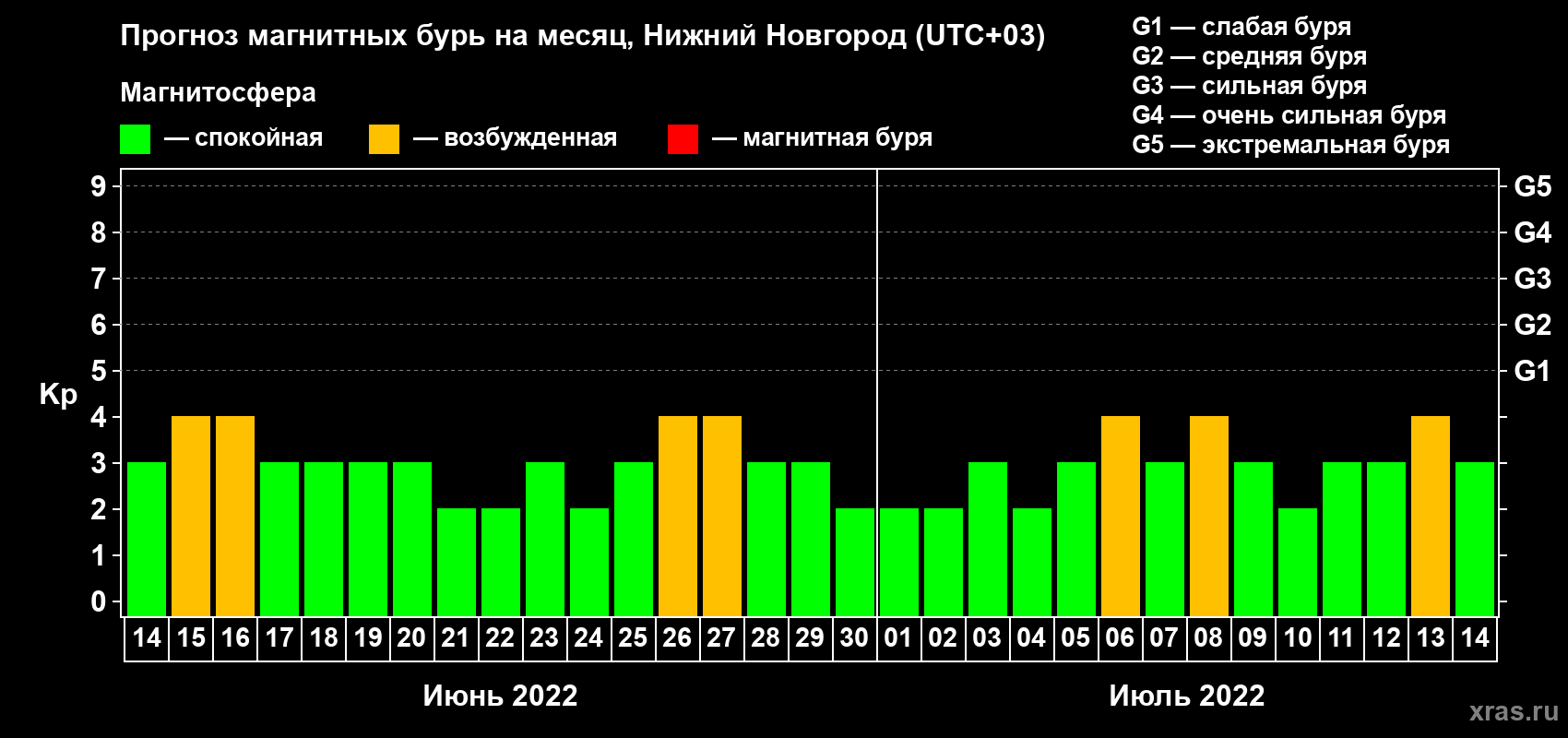 Прогноз магнитных бурь Нижнем Новгороде на 14 июня 2022 года