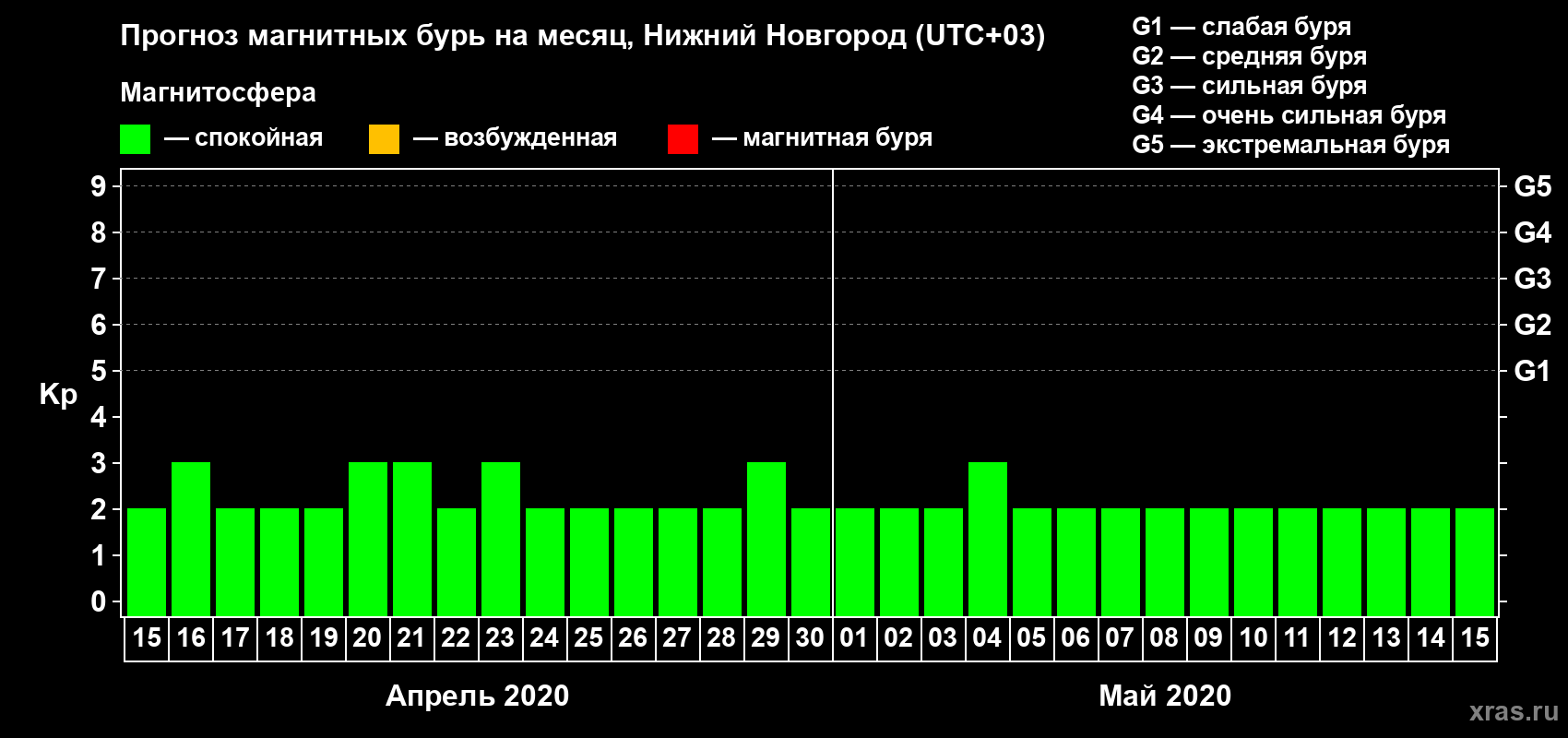 Прогноз магнитных бурь Нижнем Новгороде на 15 апреля 2020 года