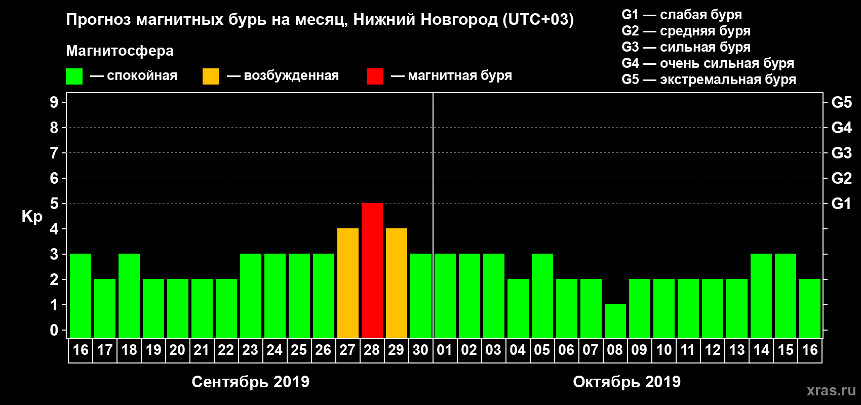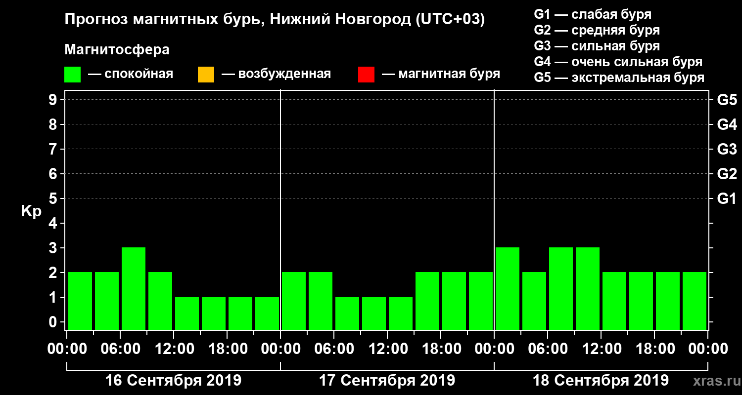 Прогноз магнитных бурь Нижнем Новгороде — 16 сентября 2019 года