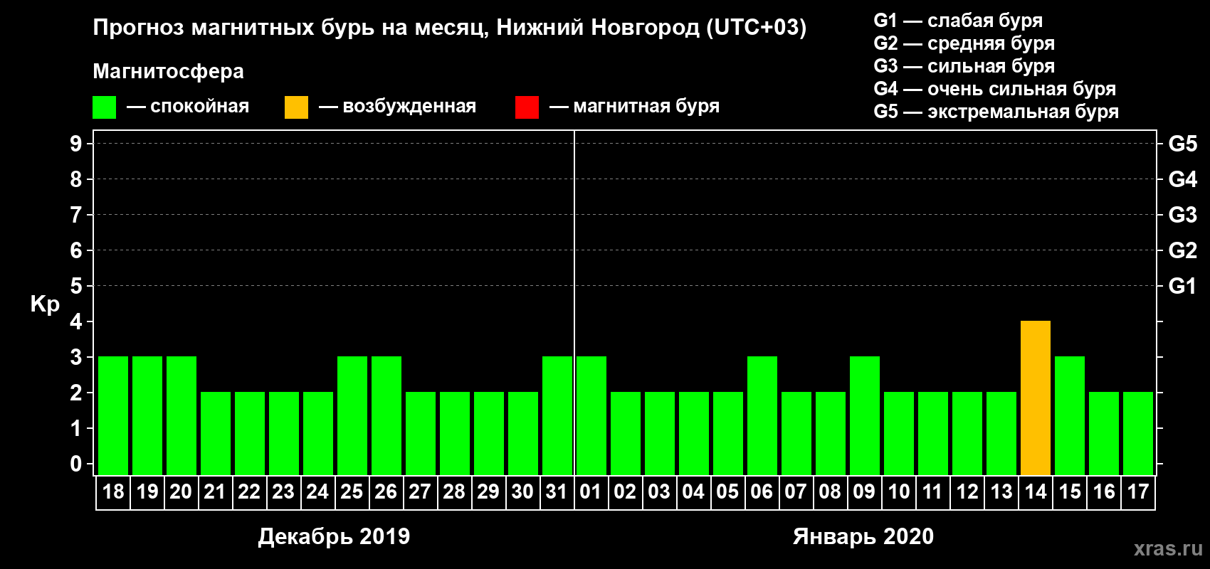 Прогноз магнитных бурь Нижнем Новгороде на 18 декабря 2019 года