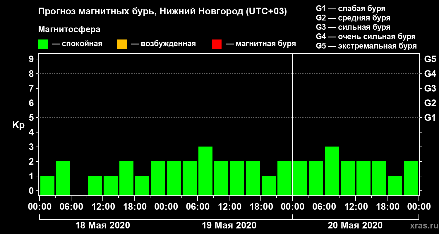 Прогноз магнитных бурь Нижнем Новгороде на 18 мая 2020 года