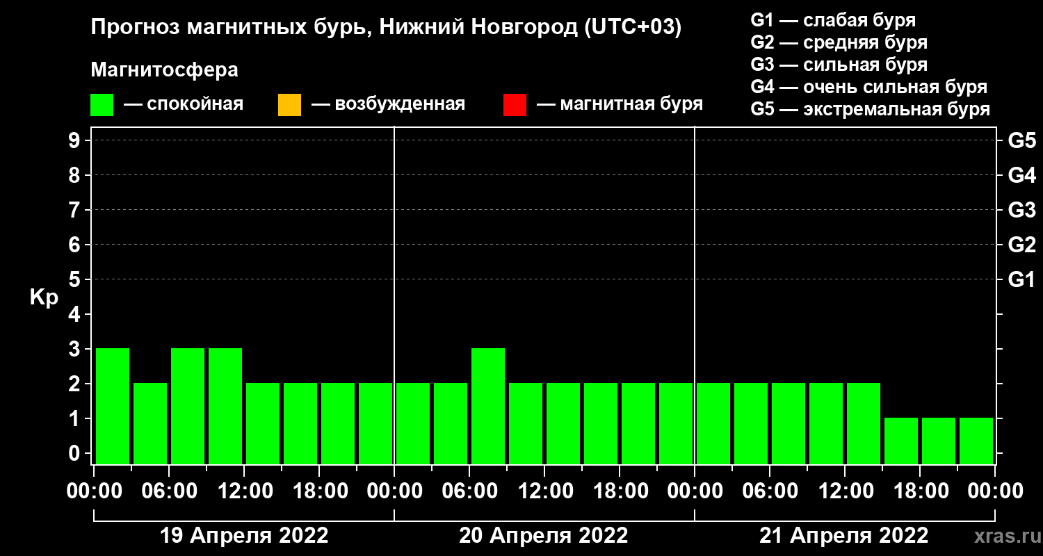 Прогноз магнитных бурь Нижнем Новгороде на 19 апреля 2022 года