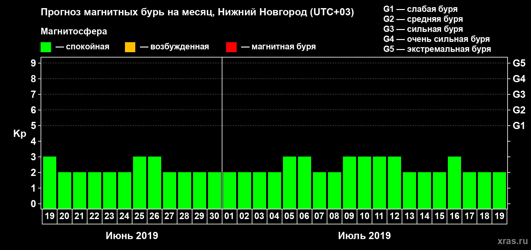 Прогноз магнитных бурь Нижнем Новгороде — 19 июня 2019 года