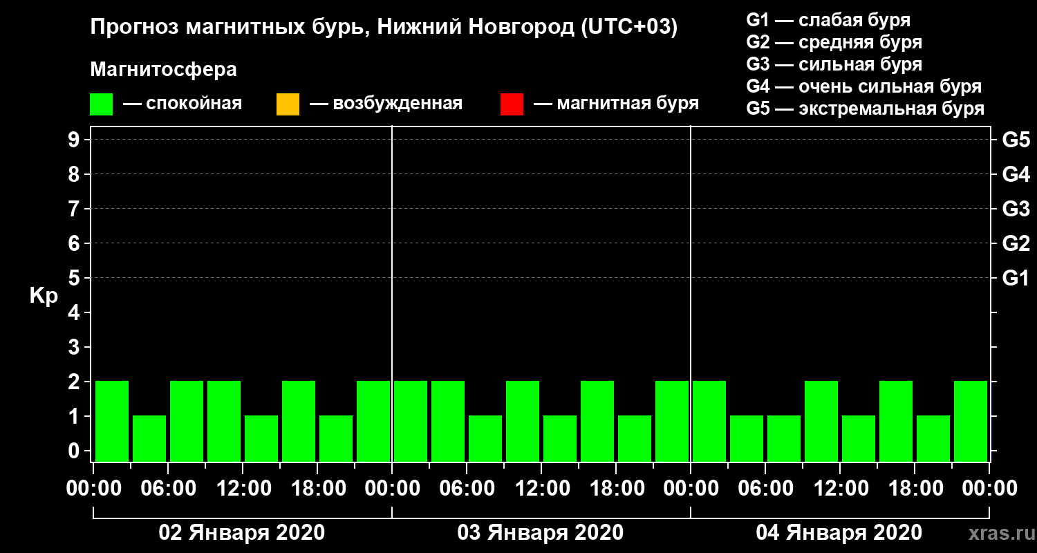 Прогноз магнитных бурь Нижнем Новгороде на 2 января 2020 года