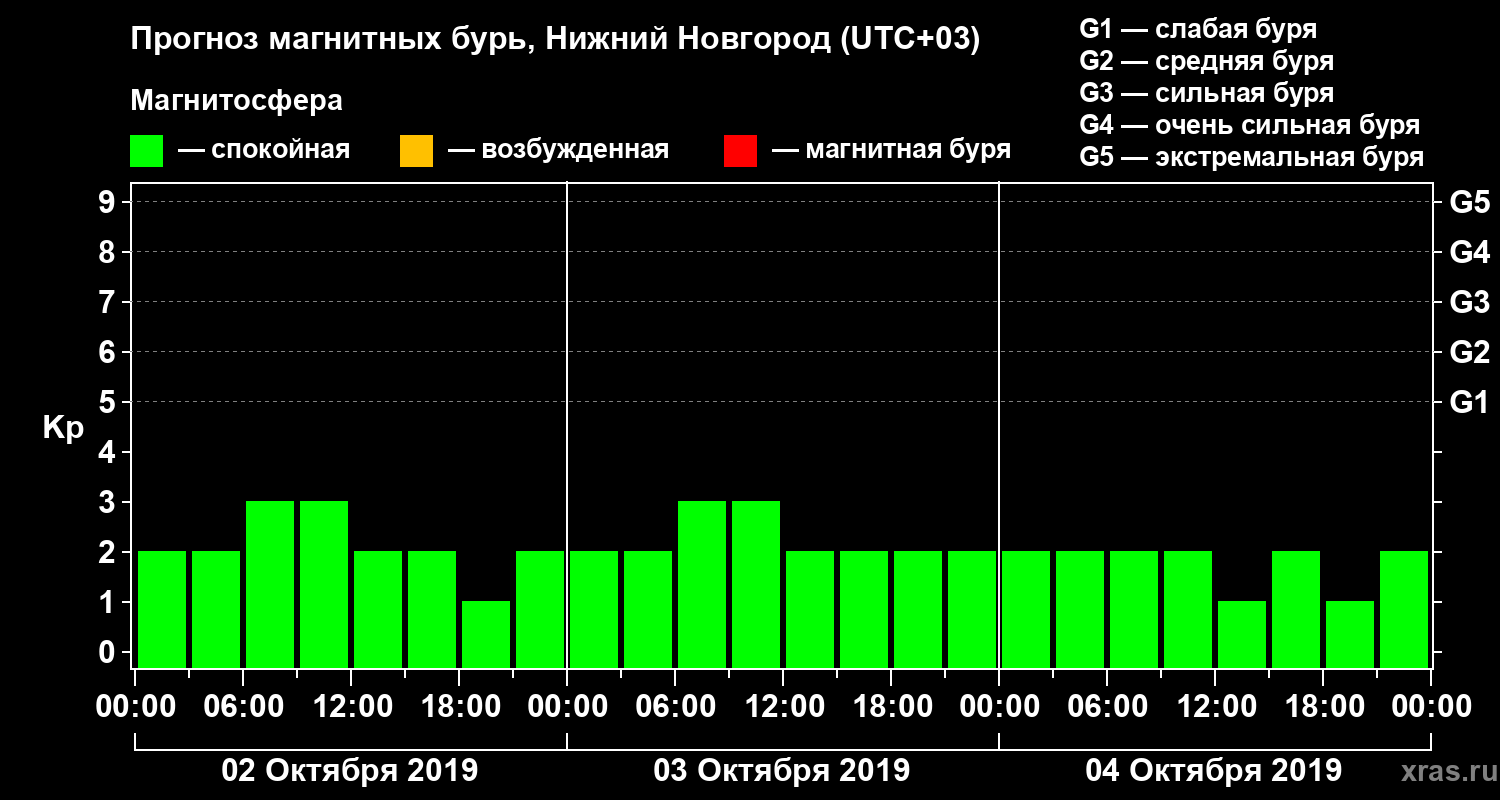 Прогноз магнитных бурь Нижнем Новгороде — 2 октября 2019 года